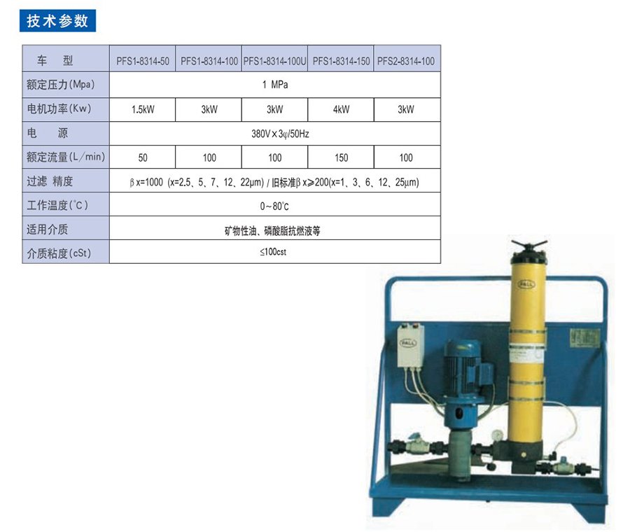 頗爾濾油機國產替代PFS1-8314 PFS2-8314固定式高效濾油裝置適用于各種液壓油、潤滑油等工業油品需要去除固體顆粒雜質的工況場合。
