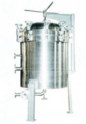 該過濾機是在密閉筒內,有若干片水平放置的濾板中間裝夾濾紙組成。它是依靠濾紙作過濾介質,在密閉容器內進行加壓過濾。過濾時,濾葉由輸送泵送入過濾機體內,沿著濾板外圓周上的小孔進入兩層濾板間,濾液穿過濾紙和多孔支撐板,流入濾板中心孔道,從機體底部出料口流出,過濾完后,用壓縮空氣將過濾機內殘液壓出。
