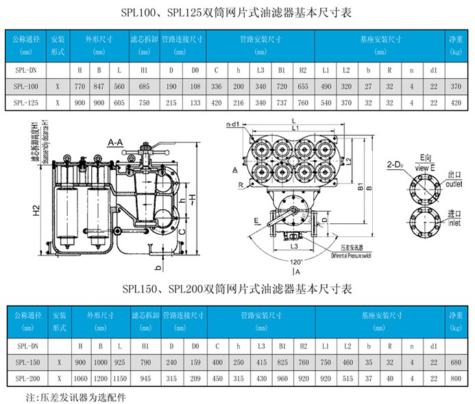 SPL雙筒網片式濾油器介紹:SPL雙筒網片式濾油器主要由殼體(我廠生產的網片式過濾器小型號殼體材質為鑄鋁,大型號殼體材質為碳鋼)、濾芯組件、轉換閥體等...