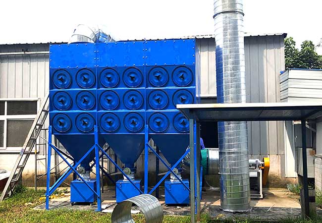 隨著環保部對環境污染的嚴查多家企業要求安裝環保除塵裝置,某鋼廠具有電焊作業點20多處,國家對于電焊車間有嚴格的排放標準,用小型移動的焊煙凈化器效果不好造價也高,我公司技術人員為其推薦了脈沖濾筒除塵器。脈沖濾筒除塵器是集脈沖除塵器及濾筒除塵器的各自優點為一體的一種小型除塵器。該產品設備具備了脈沖除塵器的除塵效率高、過濾效果好、運行穩定的優點,同時也具備了濾筒除塵器密封性能好、使用壽命長等特點的雙向性能。